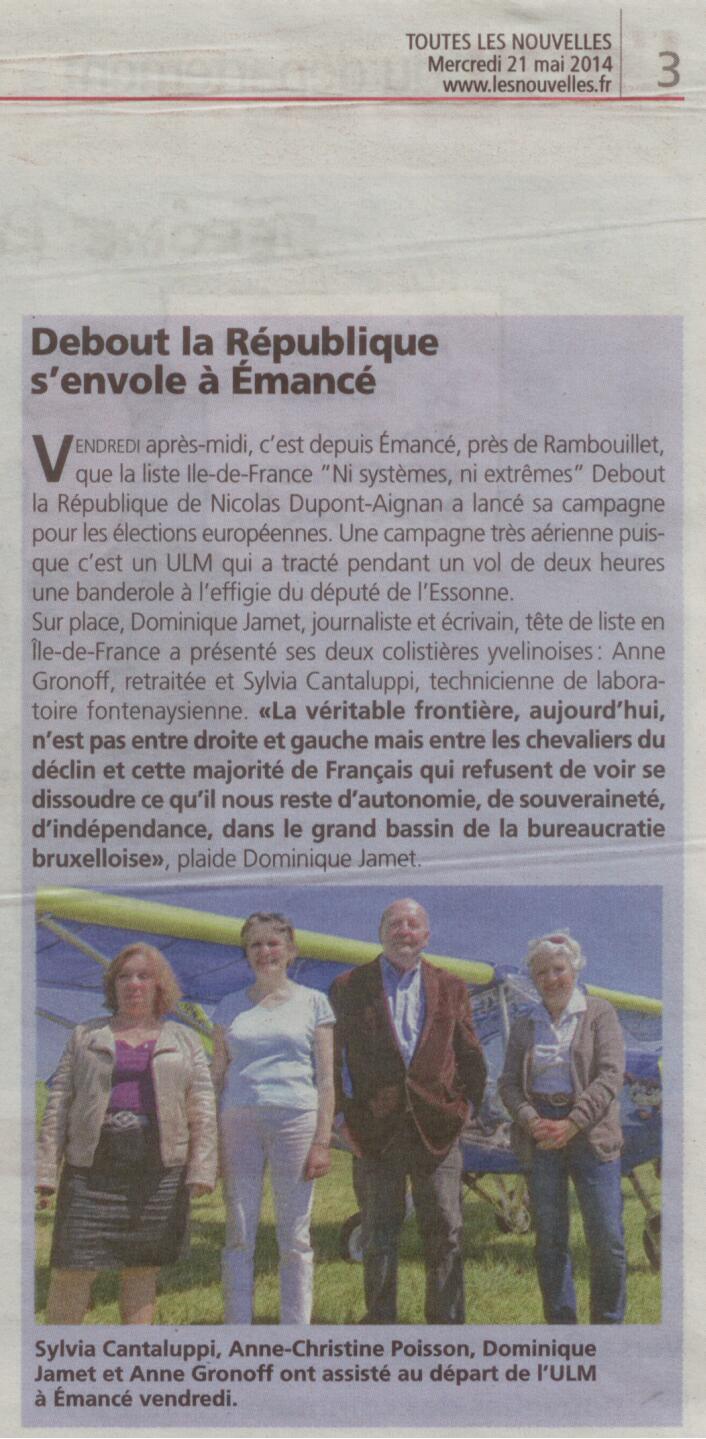 Article sur le journal "Toutes les nouvelles" du 21 mai 2014 (cliquez dessus)