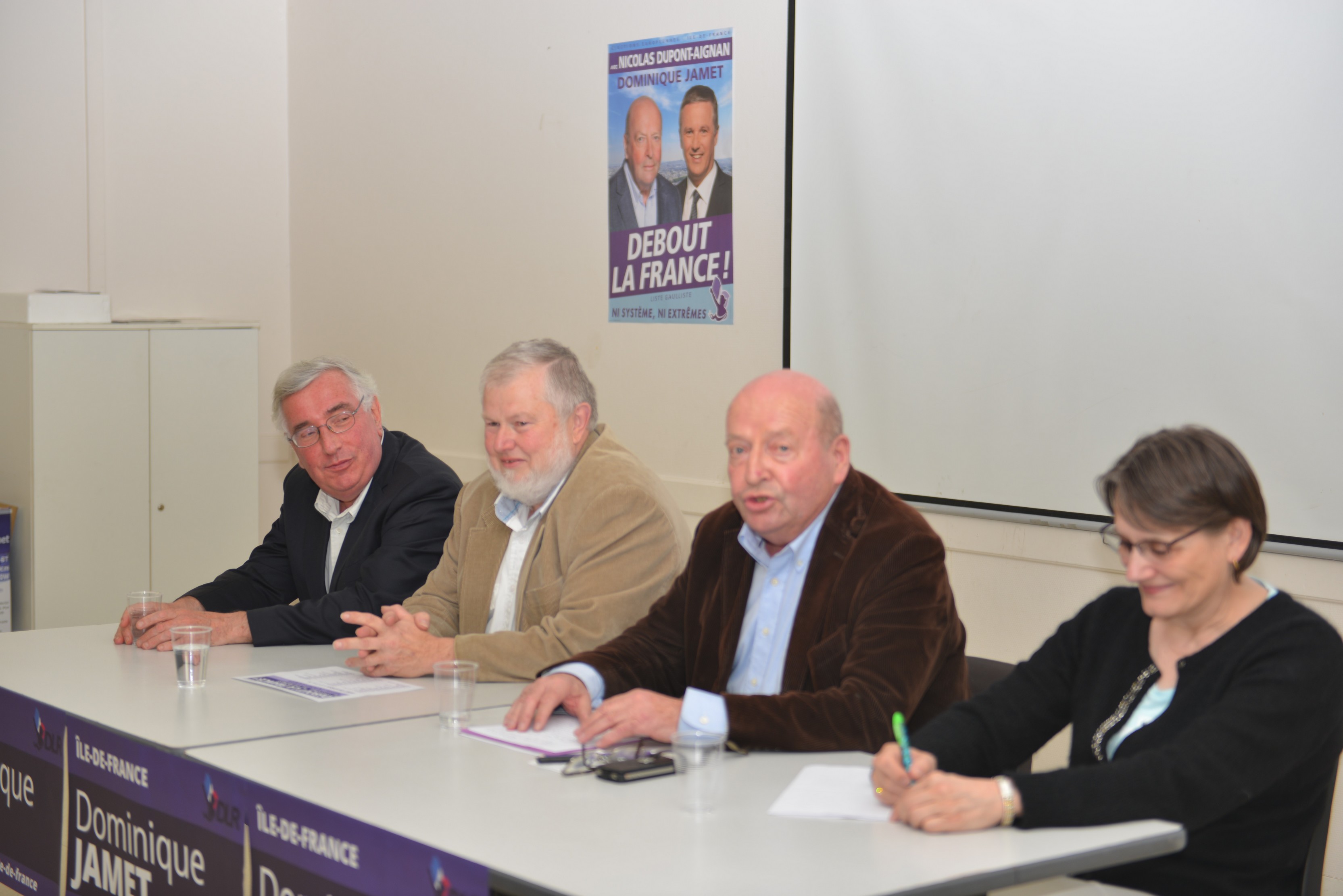 Ils ont pu écouter Dominique Jamet, notre tête de liste, toujours en verve, Anne-Christine Poisson, ancienne député européen, et François Morvan, vice-président de DLR, respectivement 4ème et 7ème sur la liste DLF Ile-de-France. Nos deux co-listières des Yvelines, Anne Gronoff (10ème) et Sylvia Cantaluppi (20ème), étaient dans la salle.