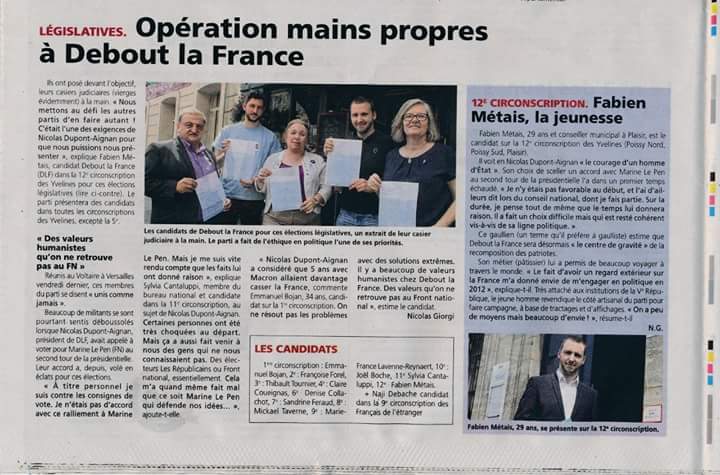Le mercredi 7 juin 2017, ce journal consacrait un article aux candidats DLF des Yvelines ainsi qu'un portrait de Fabuen Métais, candidat de la 12ème circonscription.