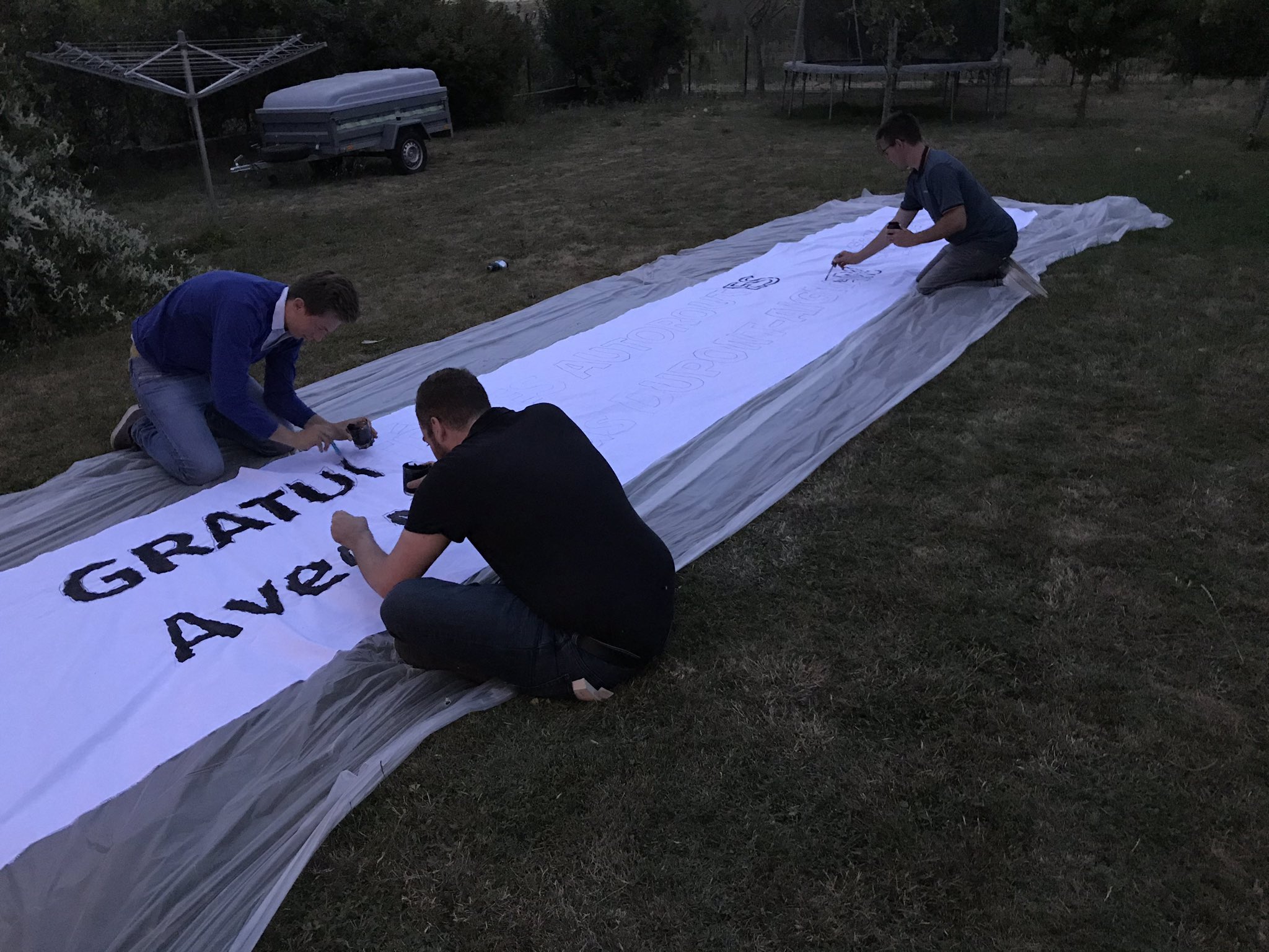 ![]() Fabrication d'une banderole (24/07) pour action prochaine |